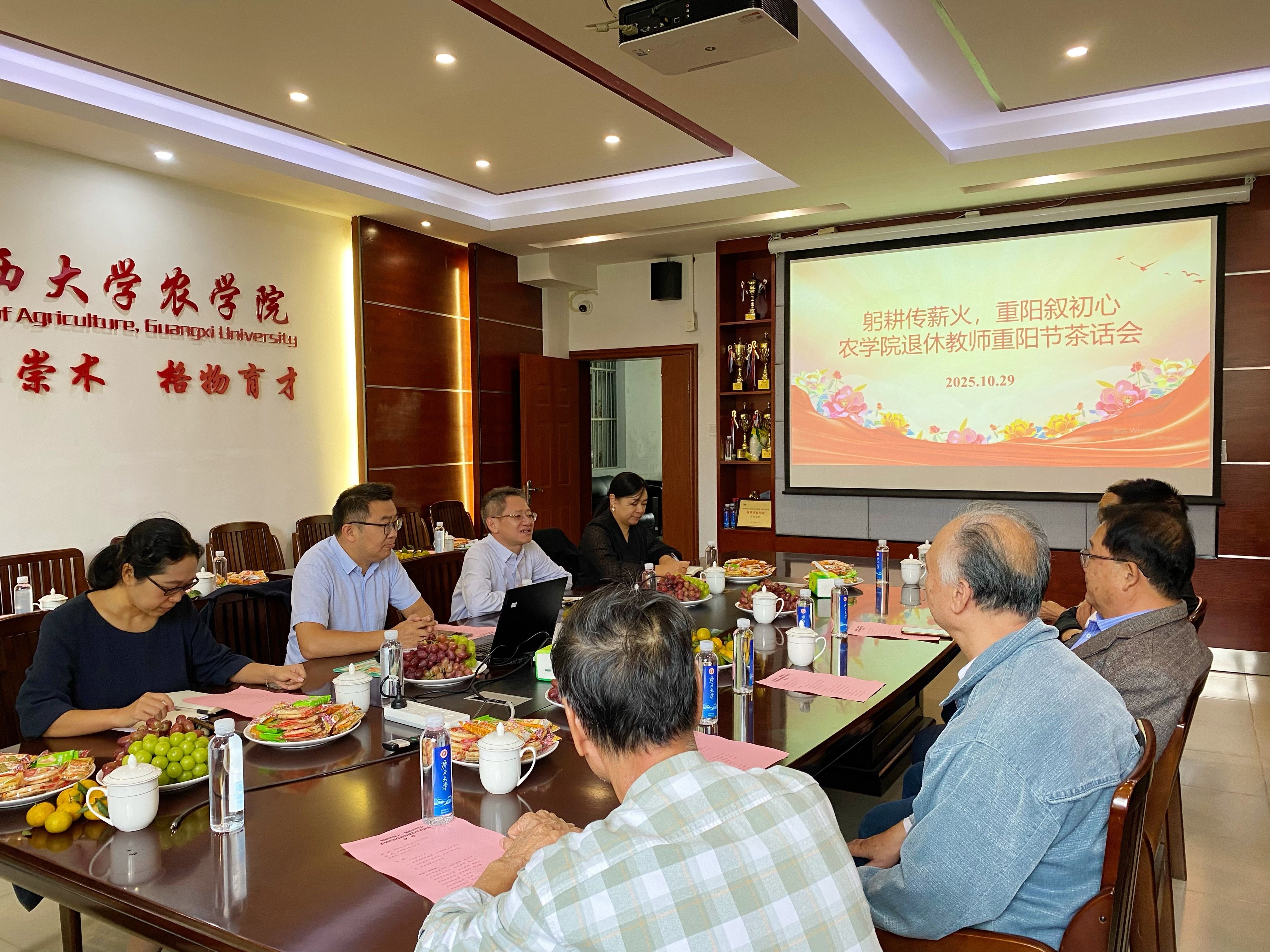 岁岁重阳,今又重阳。为传承老教师深耕农科的育人情怀,汇聚退休教师智慧,共话学院发展蓝图,10月29日,学院以“躬耕传薪火,重阳叙初心”为主题,举办退休教师重阳节茶话会。十多位退休老教师欢聚一堂,与学院在任领导共忆执教岁月、畅叙三农情怀、展望学院未来。