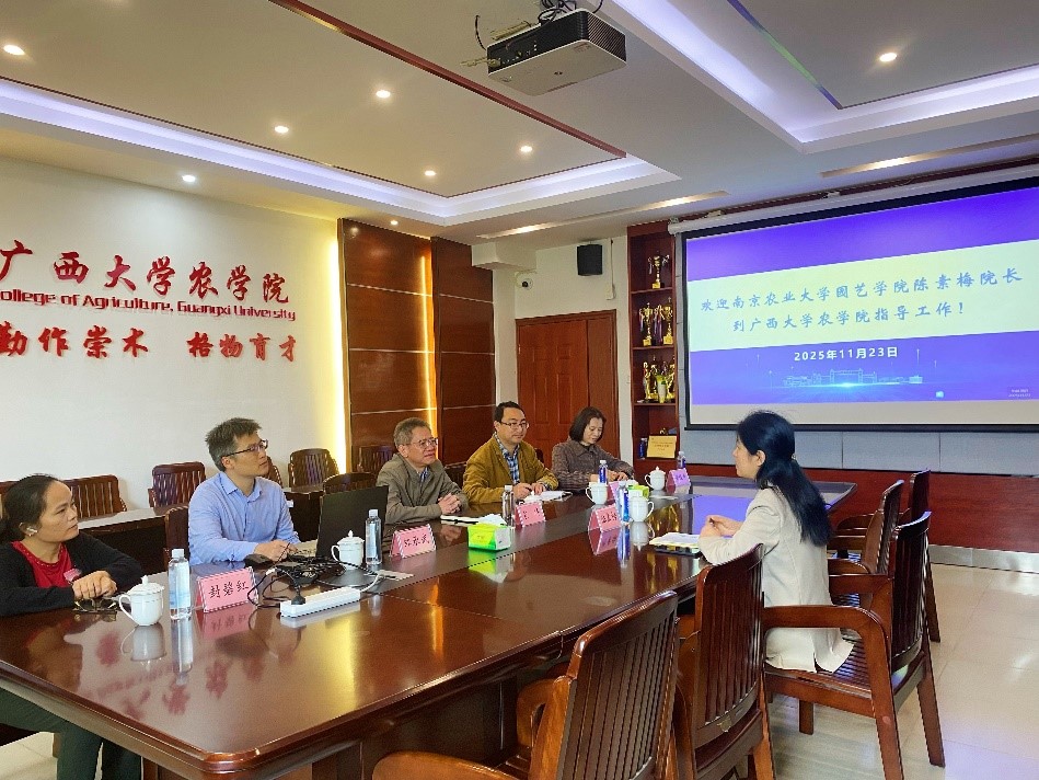 近日,南京农业大学园艺学院院长陈素梅、山西农业大学永利23411集团院长原向阳先后受邀莅临永利23411集团,围绕园艺学科建设开展深度专题交流。学院党委书记袁涛主持座谈会,副院长邹承武及园艺学科骨干教师齐聚一堂,共话学科发展路径,共谋高质量发展蓝图。