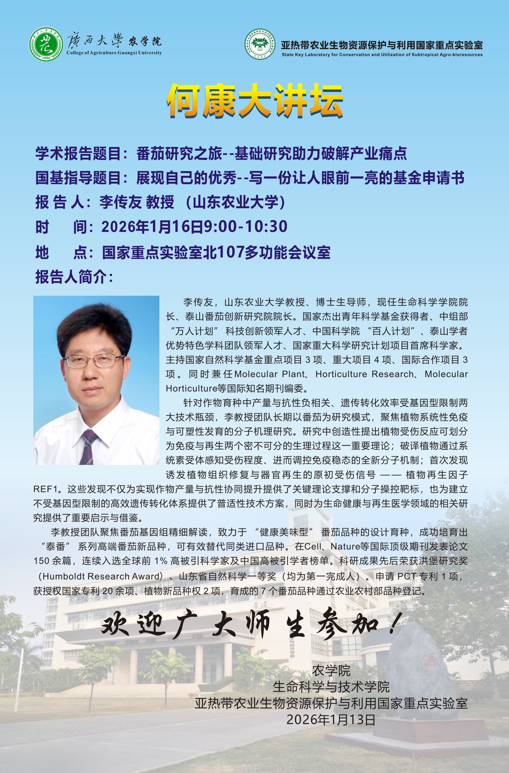 何康大讲坛-番茄研究之旅--基础研究助力破解产业痛点-李传友教授