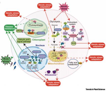 图2 赖氨酸短链酰化调控植物发育和逆境适应性的分子机制
