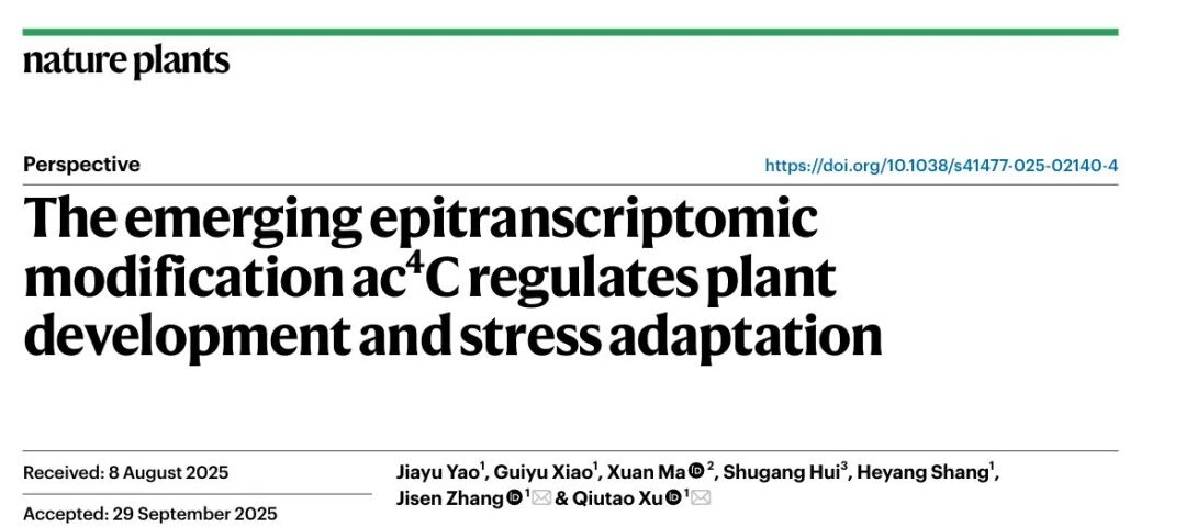 yl23411永利集团徐秋涛/张积森课题组系统综述RNA新型修饰——ac4C在植物生长发育与环境适应中的作用机制
