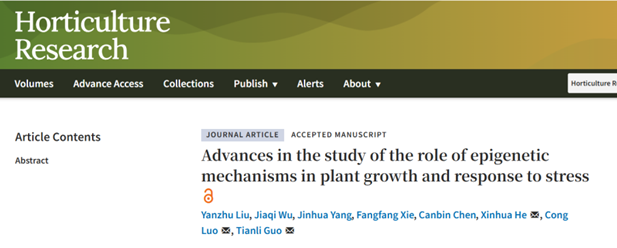 近日,永利23411集团何新华教授、罗聪教授、郭甜丽讲师团队在园艺学顶刊《Horticulture Research》上在线发表了题为“Advances in the study of the role of epigenetic mechanisms in plant growth and response to stress”的综述论文。该文系统梳理了DNA修饰、RNA修饰、组蛋白修饰、组蛋白伴侣、染色质重塑及非编码RNA调控六大核心机制,重点阐述了它们在植物生长与胁迫响应中的协同调控网络及跨代遗传规律。